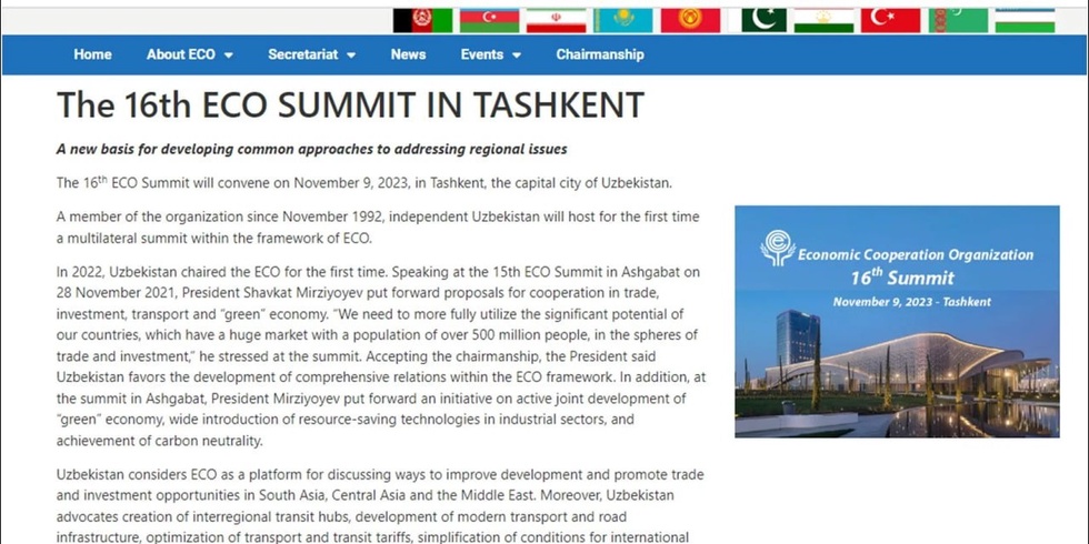 Нашрда маълум қилинганидек, 8-9 ноябрь кунлари Тошкентда Иқтисодий ҳамкорлик ташкилоти саммити бўлиб ўтади.