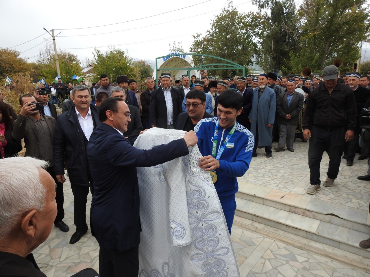 Нурота шаҳридаги "Чашма" мажмуасида ташкил этилган чемпионни кутиб олиш маросимида вилоят ва туман ҳокимлиги вакиллари, спорт ишқибозлари, жамоатчилик ва ёшлар вакиллари қатнашдилар.