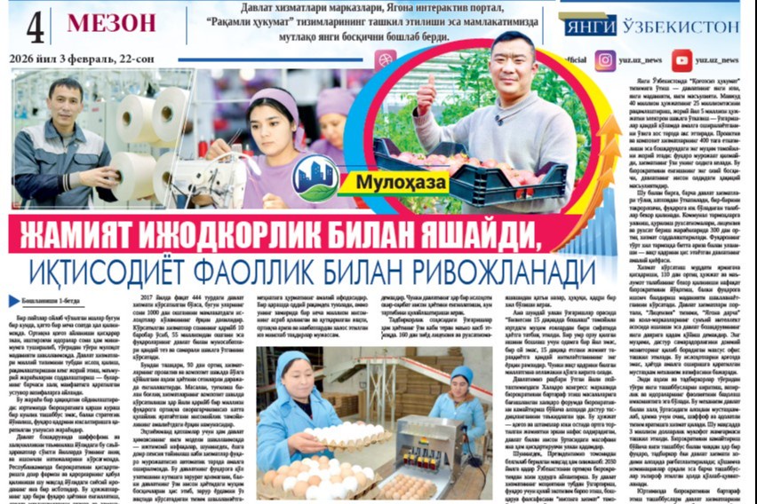 Янги Ўзбекистонда “Қоғозсиз ҳукумат” тизимига ўтиш — давлатнинг янги юзи, янги маданияти, янги масъулияти. Мавжуд 40 миллион ҳужжатнинг 25 миллионтасини рақамлаштириш, жорий йил 5 миллион ҳужжатни электрон шаклга ўтказиш — ўзгаришлар қандай кўламда амалга оширилаётганини ўзига хос тарзда акс эттиради. Проактив ва композит хизматларнинг 400 тага етказилиши эса бошқарувдаги энг муҳим тамойилни жорий этади: фуқаро мурожаат қилмайди, хизматнинг ўзи унинг олдига келади. Бу бюрократияни енгишнинг энг олий босқичи, давлатнинг инсон олдидаги ҳақиқий масъулиятидир.