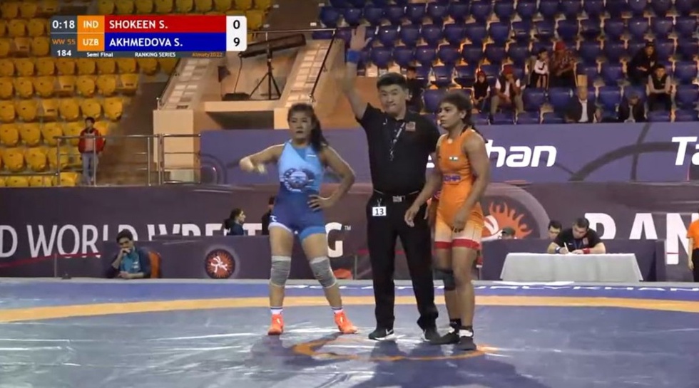 Қувонарлиси, бироз аввал аёллар ўртасидаги беллашувларда икки вакиламиз финал йўлланмасини қўлга киритди. Ёшлар Олимпиадаси бронза медали совриндори Шоҳида Аҳмедова финалда олтин медаль учун курашадиган бўлди. 55 кг вазндаги курашчимиз 1/2 финалда ҳиндистонлик Сушма Шокинни муддатидан аввал мағлуб (9-0) эта олди. Унинг финалдаги рақибаси қозоғистонлик Марина Седнева бўлади. Бу икки курашчининг иккинчи даврадаги ўзаро баҳсида Седнева 12-9 ҳисобида устун келганди.