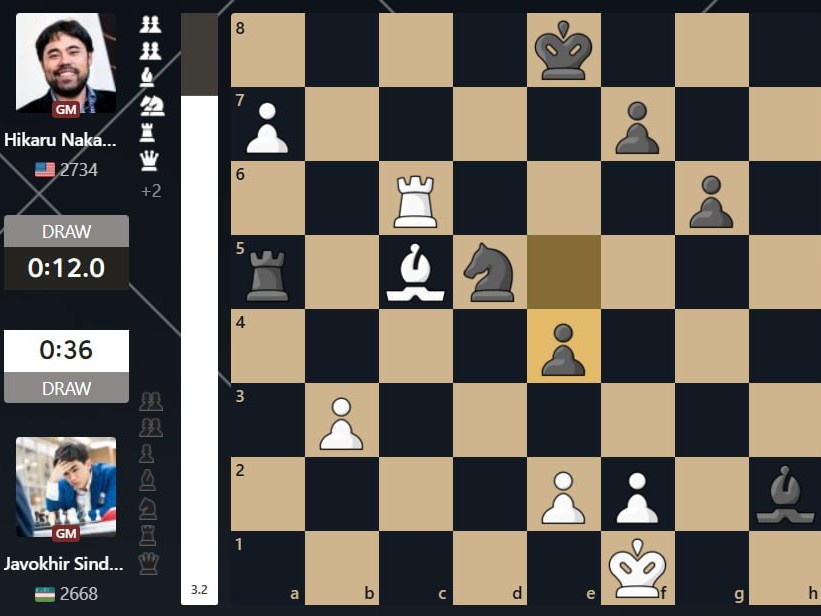 Унда кеча Жавоҳир Синдоров америкалик Ҳикару Накамурага қарши тай-брейкнинг ҳал қилувчи иккинчи партиясини ўтказди.