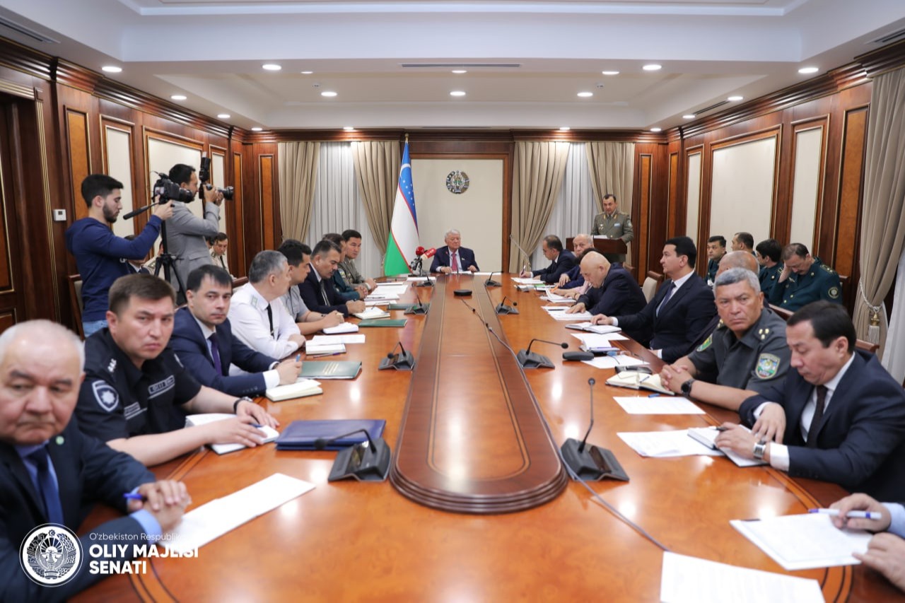 Тадбир аввалида Ўзбекистон Республикаси Миллий гвардияси томонидан мамлакатимизда жамоат хавфсизлигини таъминлаш бўйича 2021 йил ва 2022 йилнинг I чорагида амалга оширилган ишлар ҳолати тўғрисида Миллий гвардия қўмондонининг ахбороти эшитилди.