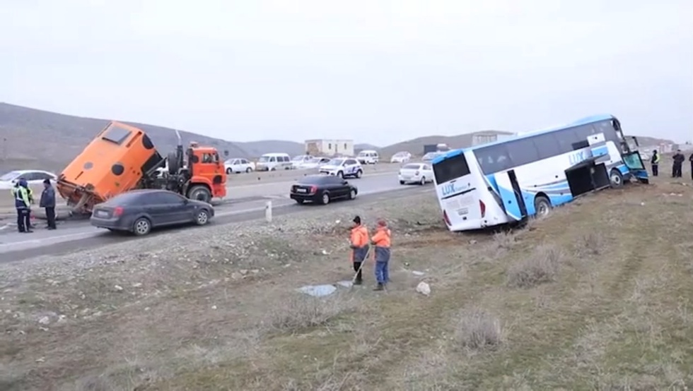 ИИБ матбуот хизматининг хабар беришича, Самарқанддан Тошкент томон ҳаракатланаётган йўловчи ташувчи автобус ўзидан олдинда кетаётган, йўлларни тозаловчи махсус транспорт воситасининг орқасига бориб урилган.