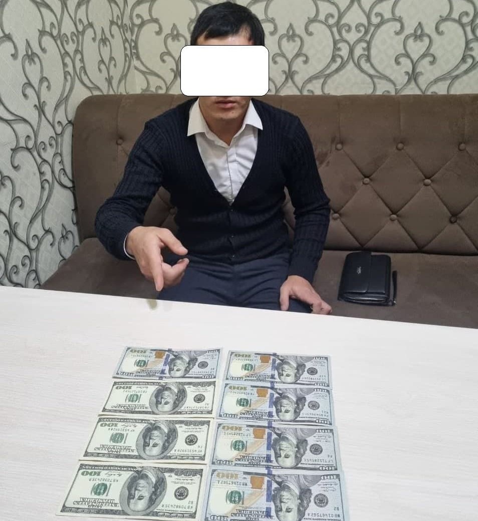 Бош прокуратура ҳузуридаги Департамент ҳамда ДХХнинг Жиззах вилояти бошқармалари томонидан тадбиркорлик субъектларининг ҳуқуқларини ҳимоя қилиш юзасидан ўтказилган тезкор тадбирда, Жиззах шаҳар Давлат солиқ инспекциясининг давлат солиқ катта инспектори А.Х. “M.N.” МЧЖ раҳбари М.нинг ишончига кириб, банк муассасаларида ишловчи танишлари орқали 200 млн сўм имтиёзли кредит ажратилишида ёрдам бериш эвазига 600 АҚШ доллари ва ўзи учун қайтариб бериш шарти билан 200 АҚШ долларини олган вақтида ашёвий далиллар билан ушланган.