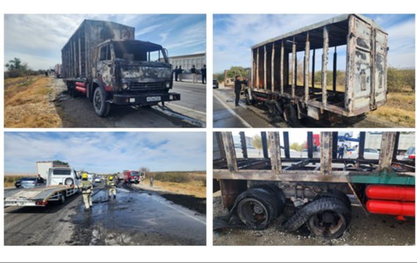 Қайд этилишича, Жиззах вилоятининг Ғаллаорол тумани ҳудудидан ўтувчи М-39 “Тошкент-Термиз” автомобиль йўлининг 1029 км.да Самарқанд вилоятида яшовчи 1983 йилда туғилган ҳайдовчи “КАМАЗ” русумли юк ташувчи транспорт воситасини “Самарқанд-Тошкент” йўналиши бўйича бошқариб кетаётган вақтда, автомашинанинг двигатель қисмида қисқа туташув вужудга келганлиги сабабли ёнғин чиққан.