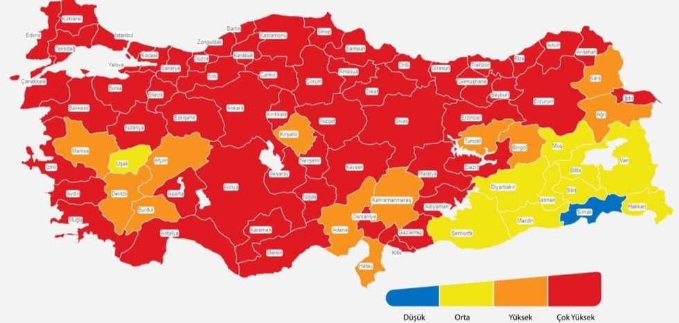 Қизил вилоятларда, шу жумладан Истанбул шаҳрида ҳам, шанба ва якшанба кунлари комендантлик соатига амал қилинади.
