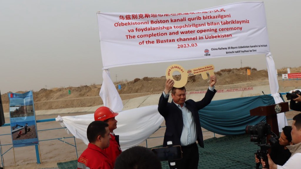 Хитойнинг қурилиш компанияси вакиллари томонидан “Бўстон” каналининг рамзий калити Қорақалпоғистон Республикаси Сув хўжалиги вазири Адилбек Реимбаевга тантанали равишда топширилди. Оқсоқоллар, масъул раҳбарлар иштирокида тасмалар кесилиб, “Бўстон” каналининг шарқий қисми расман очилди.