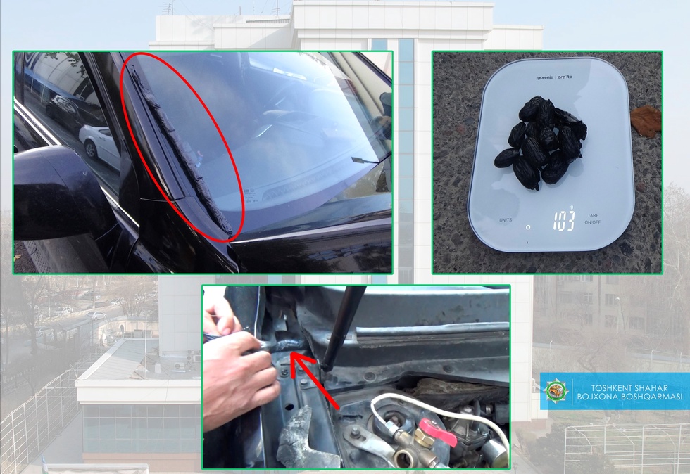Тезкор тадбир давомида "Каптива" русумли автотранспорт воситаси тўхтатилди. Белгиланган тартибда кўздан кечирилганда транспорт воситасида оғирлиги 103,04 грамни ташкил қилувчи гашиш гиёҳвандлик воситаси хуфёна тарзда яширилгани фош бўлди.
