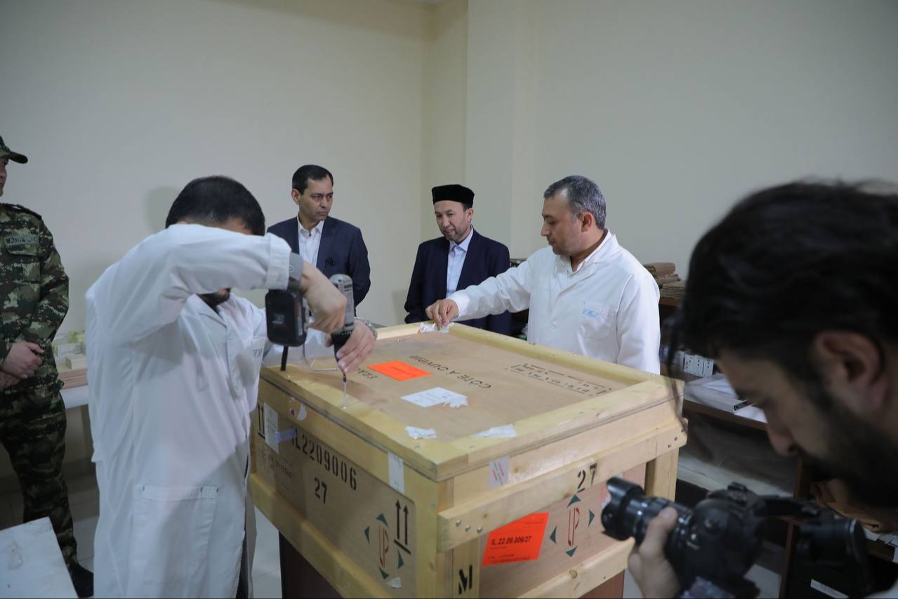 «Катта Лангар Қуръони» саҳифалари Франциядан Тошкент халқаро аэропортига жорий йил 23 март куни етиб келди. Божхона ҳужжатлари расмийлаштирилгач, саҳифалар жойлаштирилган қути ички ишлар ходимлари ҳамроҳлиги ва кузатувида Диний идора кутубхонасига етказилди.