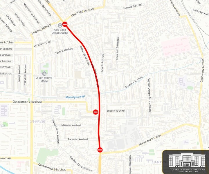 Шу муносабат билан, Тошкент шаҳар ҳокимининг 2023 йил 18 июлдаги фармойишига асосан, 19 июл соат 20:00 дан 30 август кунига қадар Келес йўли кўчасининг Норазтепа кўчаси билан кесишмасидан Узумбоғ кўчаси билан кесишмасигача бўлган оралиғи барча турдаги транспорт воситалари ҳаракати учун ёпилади.