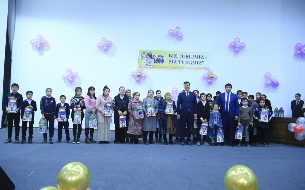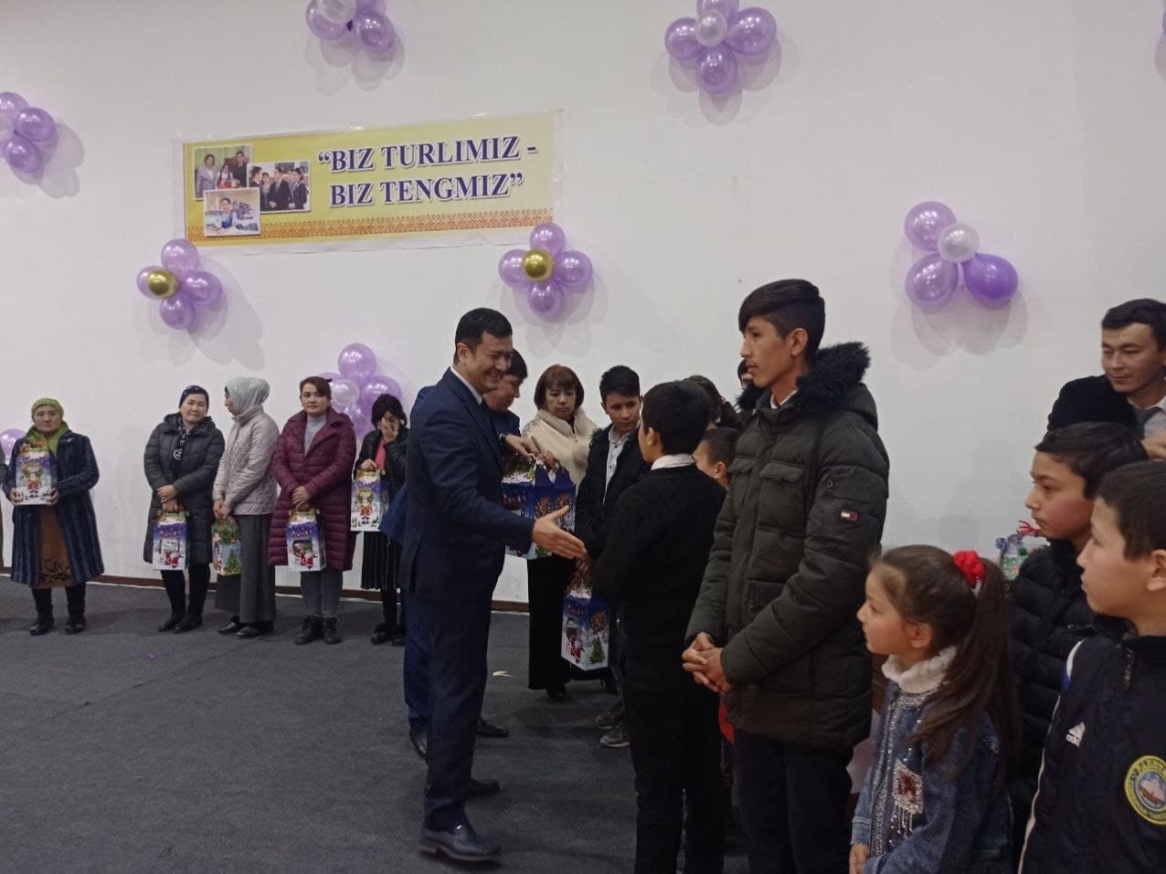 Жиззах вилоятидаги маҳаллаларда истиқомат қилувчи юз нафарга яқин кам таъминланган, имконияти чекланган, “Аёллар дафтари”,”Ёшлар дафтари”га киритилган юртдошларимиз, мактаб-интернат тарбияланувчилари учун хайрия тадбири ўтказилди.