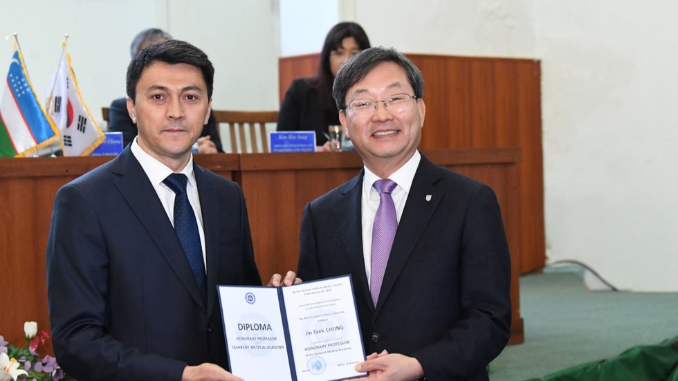Тошкент тиббиёт академиясида бўлиб ўтган тақдимот якунида Корея университети президенти Жин Тэ Чангга академиянинг “Фахрий профессори” унвони топширилди. Ўз навбатида, томонлар ўртасида Англашув меморандуми имзоланди.
