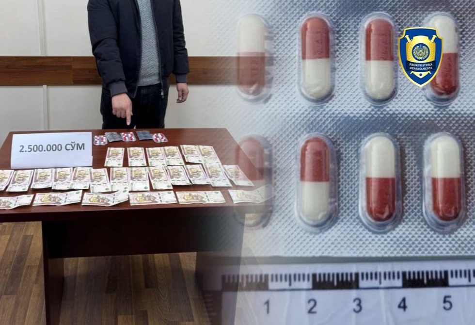 Ўтказилган тезкор тадбирда фуқаро М.А. фуқаро А.Х.га кучли таъсир қилувчи “Зардекс” номли дори воситасини 50 донасини 2,5 млн сўмга сотган вақтида ашёвий далиллар билан ушланди.