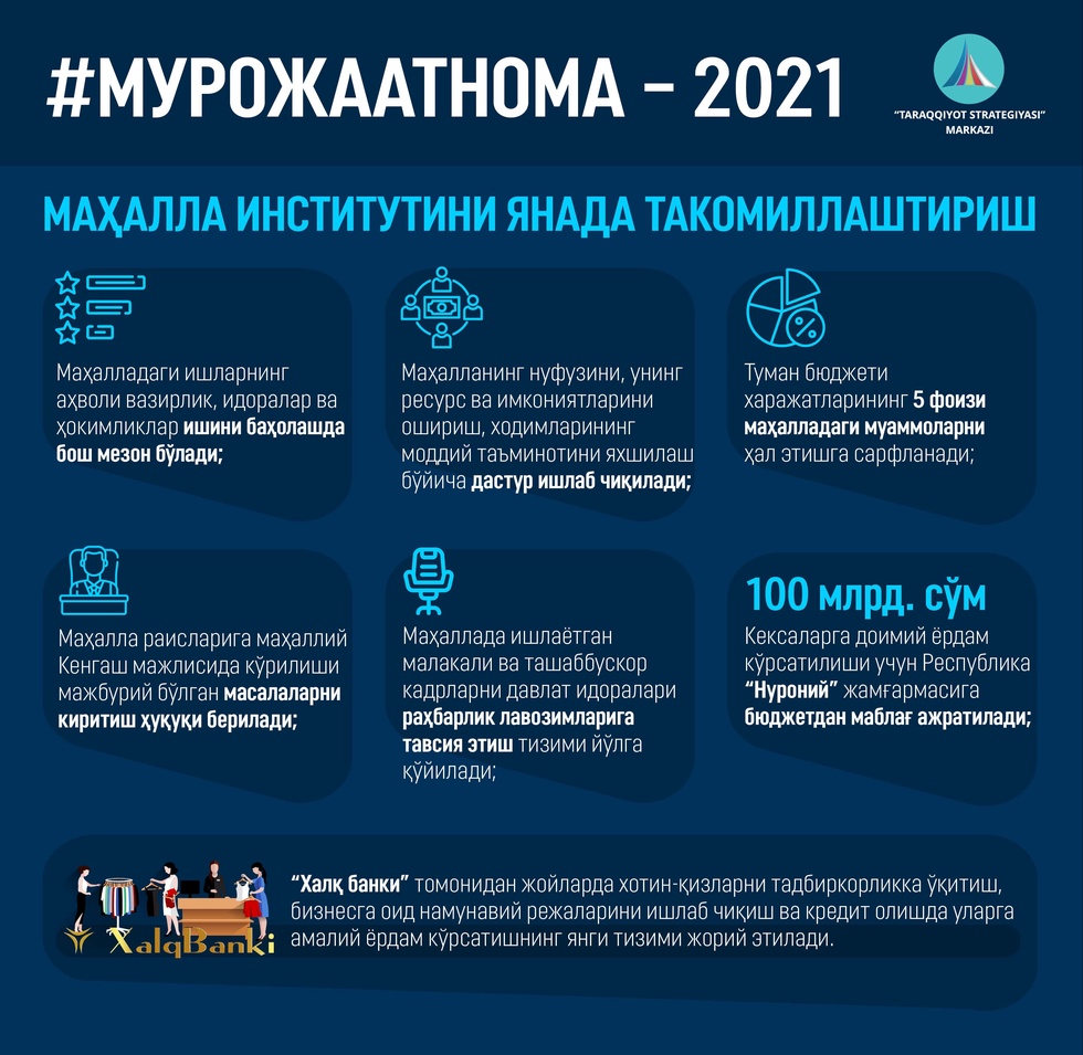 Маҳалла институтини такомиллаштириш бўйича инфографика