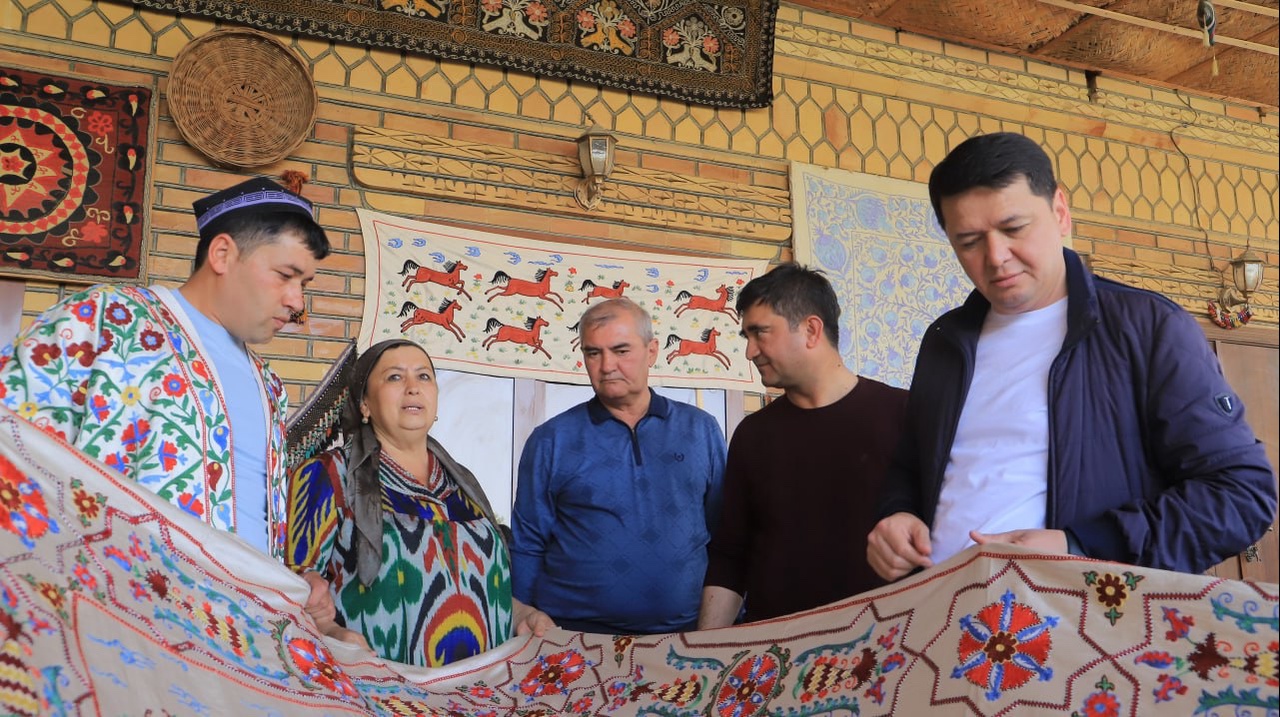 Бундан ташқари, иштирокчилар Талижа қишлоғидаги ҳунармандчилик тармоғида узоқ йиллардан буён меҳнат фаолиятини юритаётган чевар каштадўз Муҳаббат Қўчқорова хонадонига ҳам боришди. Каштадўз аёлнинг кўп сонли шогирдлари қаторида бугун хориждан меҳнат миграциясидан қайтган хотин-қизларга ҳунар сирлари ўргатиб келинмоқда. Хонадон бекаси билан мулоқотда юздан ортиқ шогирдига эга бўлган моҳир каштадўз фаолиятини янада кенгайтириш орқали янги иш ўринларини яратиш, баъзи ночор оилаларга даромад манбаини яратишга доир таклиф ва тавсиялар берилди.