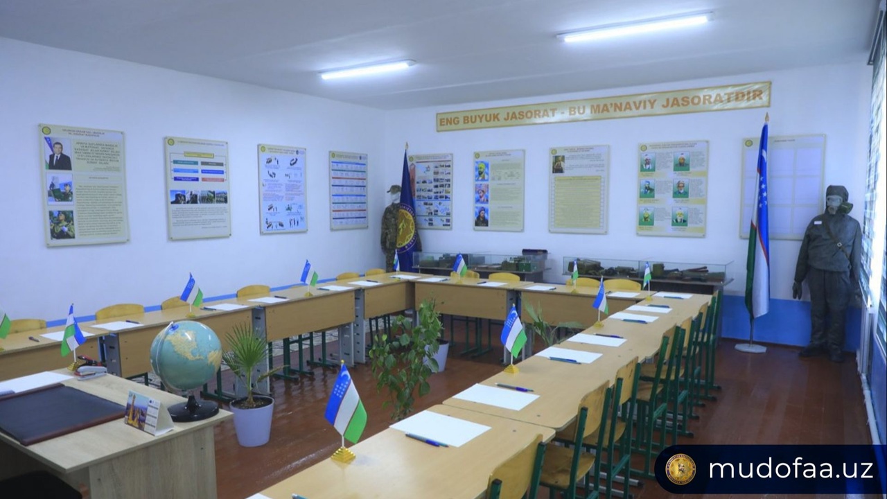 Ўқув синфлари округ ҳарбий хизматчилари томонидан янгича кўринишга келтирилиб, моддий базаси янгиланди. Буюк саркардаларимиз, тараққиёт стратегияси ва бошқа қизиқарли маълумотлар акс этган  “Ватан азиз, жасорат мангу!” ва “Мактабимиз фахри” каби бурчаклар барпо этилди.