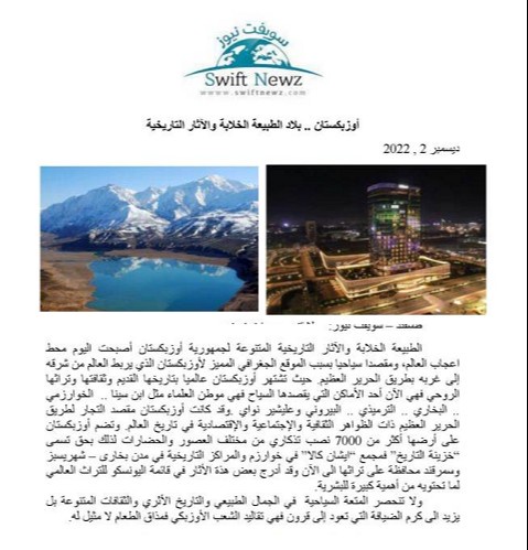 Мақолада Ўзбекистон ўзининг қадимий тарихи, маданияти ва маънавий мероси билан дунёга машҳур бўлиб, у бугунги кунда Ибн Сино, Ал-Хоразмий, Ал-Бухорий, Ат-Термизий, Ал-Хоразмий, Ал-Беруний ва Алишер Навоий каби машҳур аллома ва мутафаккирлар юрти сифатида жаҳон сайёҳлари ўртасида донг таратганига алоҳида эътибор қаратилган.