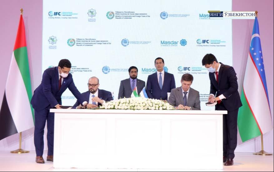 Пойтахтимизда Бирлашган Араб Амирликларининг “Масдар” компанияси билан ҳамкорликда Самарқанд ва Жиззах вилоятларида қурилиши режалаштирилган иккита қуёш фотоэлектр станцияси учун лойиҳа келишувларини имзолаш маросими бўлиб ўтди.