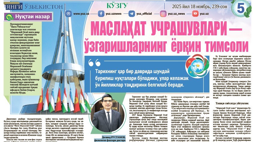 2017 йилда бошланган Марказий Осиё давлатлари раҳбарларининг Маслаҳат учрашувлари қисқа вақт ичида минтақавий мулоқотнинг асосий платформасига айланди. Авваллари ташқи кучлар иштирокисиз бу қадар муҳим масалалар бўйича тизимли мулоқот қилишни тасаввур этиш ҳам қийин эди. Бугун эса айнан шу учрашувлар минтақа сиёсий архитектурасининг пойдеворини ташкил этмоқда.