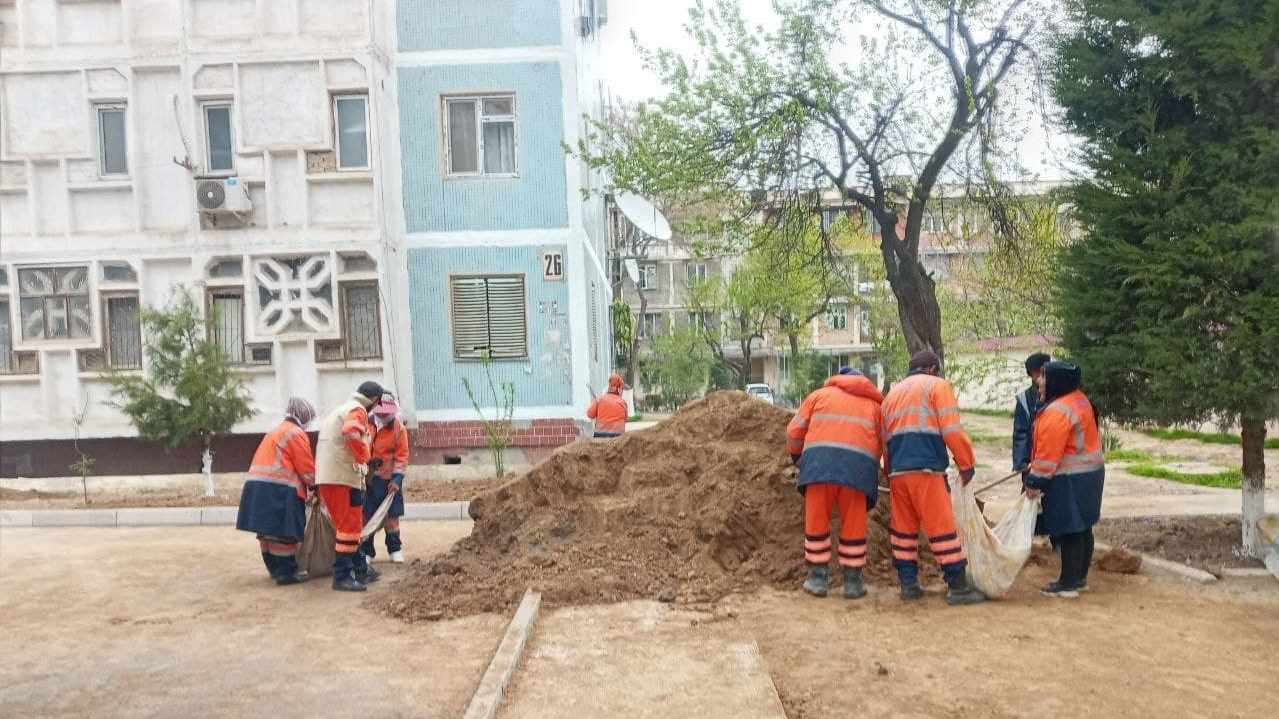Бугун тумандаги Хонтўпи, Катта Дўмбиробод, Мевазор, 1-Чарх Комолон, Бешқўрғон, Тирсакобод каби йирик маҳаллалар ҳудудидаги ва марказий кўчалардаги чиқиндилар ташиб чиқиб кетилди.