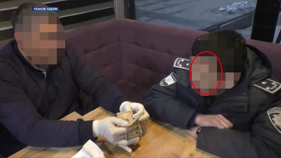 Миллий гвардиянинг Тошкент шаҳар Қўриқлаш бошқармаси Олмазор тумани бўлими отряд командири катта лейтенат Т.А. 1980 й.т. фуқаронинг ишончига кириб, юқори лавозимда ишловчи ҳамкасблари орқали унинг танишини Миллий гвардия тизимига ишга киритиб қўйиш эвазига М.Улуғбек туманидаги «Экобозор» савдо мажмуаси автотураргоҳида 5500 АҚШ доллари олган вақтида ашёвий далиллар билан ушланди.