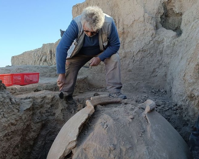 Ушбу археологик топилма туманнинг Дўстлик маҳалласи ҳудудида жойлашган “Қўй тепа” тепалиги ўрнидан топилди. Айни пайтда ушбу жойда италиялик ҳамда самарқандлик археолог-олимлар илмий экспедиция олиб бормоқда.
