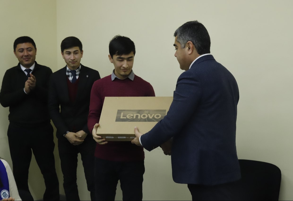 Ректорнинг тил сертификати бўйича юқори натижа қайд этган талабаларни рағбатлантириш борасидаги ваъдасига биноан Ш.Ҳайдаровга халқаро тил билиш сертификатидан 7,5 балл натижа кўрсатгани учун ноутбук совға қилинди. Аввалроқ М.Aдашалиева ҳам худди шундай рағбатлантирилган.