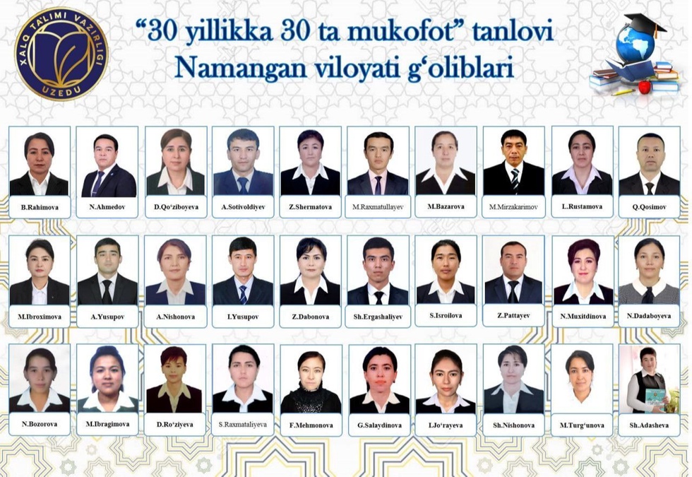 Наманган вилоят халқ таълими бошқармаси ахборот хизмати берган маълумотга кўра, танлов низомига мувофиқ, ғолиблар Халқ таълими вазирлигининг «Халқ таълими аълочиси» ёки «Халқ таълими фидойиси» кўкрак нишонлари билан тақдирланадилар. Кўкрак нишонлари 1 октябрь - Ўқитувчи ва мураббийлар куни муносабати билан ўтказиладиган вилоят байрам тадбирида тантанали тарзда ўз эгаларига топширилади.