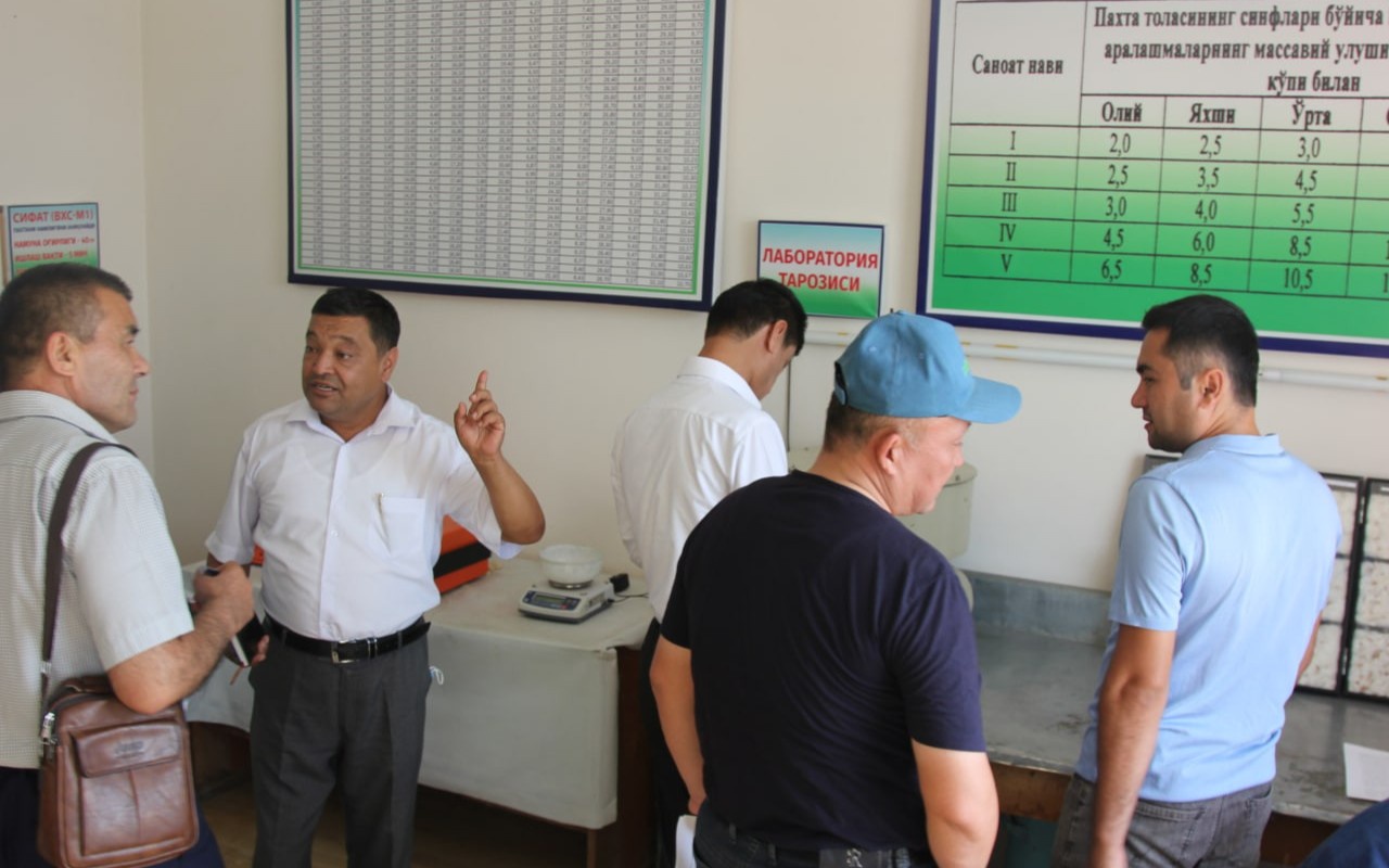 Тадбирда қабул масканларига келтирилган ҳосилнинг намлиги, ифлослилик даражасини аниқлаш, лаборатория текширувларини ўтказиш, меъёрий ҳужжатлар асосида ишни ташкиллаштириш каби жараёнларга алоҳида тўхталиб ўтилди.