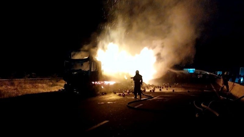 Таъкидланишича, бугун, 23 май куни соат 01:06 да Наманган вилояти Поп тумани «Садоқат» МФЙ ҳудудидан ўтган А-373 автомобиль йўлининг 277.5 километрида «Водий-Тошкент» йўналишида ҳаракатланиб кетаётган «ДАФ» русумли юк автомобилида ёнғин чиққан.