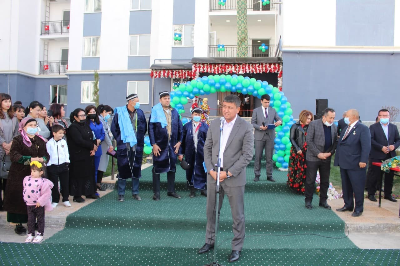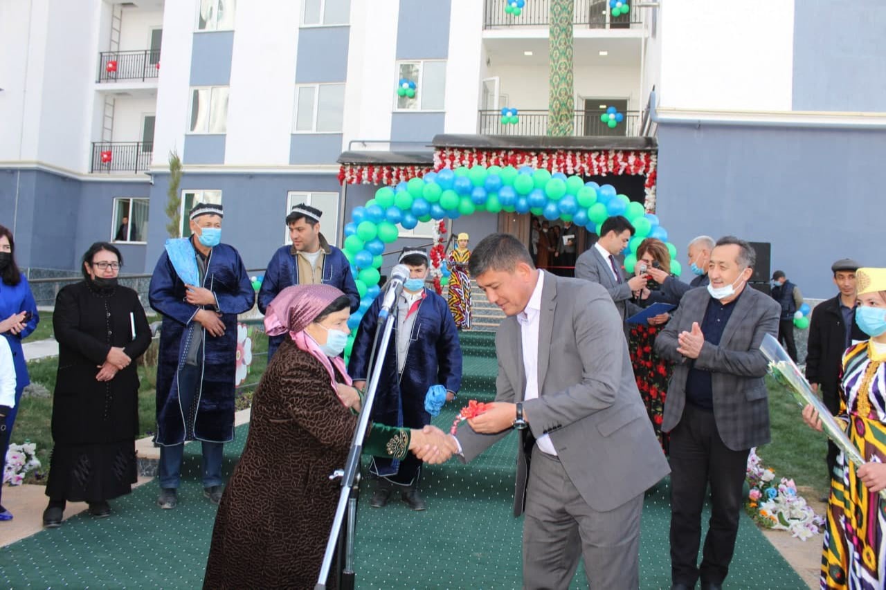 Янги уйларнинг калитлари тантанали топшириш муносабат билан ўтказилган тадбирда вилоят ҳокими ўринбосари Акбар Эшонқулов ва Қарши шаҳар ҳокими Нормўмин Холбоев сўзга чиқиб, хонадон эгаларини янги уй билан муборакбод этди.