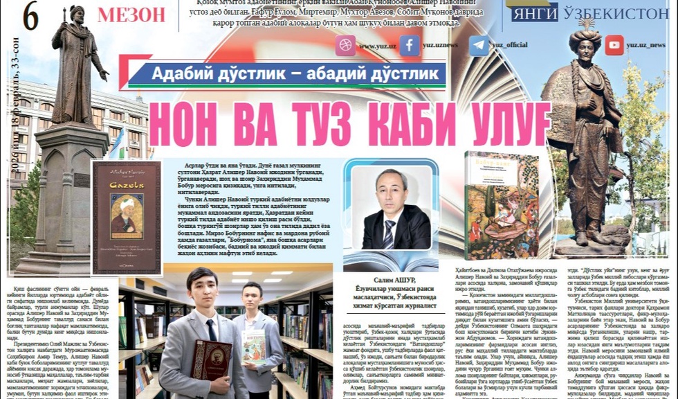 Қиш фаслининг сўнгги ойи — февраль кейинги йилларда юртимизда адабиёт ойлиги сифатида нишонлаб келинмоқда. Дунёда байрамлар, турли анжуманлар кўп. Шулар орасида Алишер Навоий ва Заҳириддин Муҳаммад Бобурнинг таваллуд санаси билан боғлиқ тантаналар нафақат мамлакатимизда, балки бутун дунёда кенг миқёсда нишонланади.