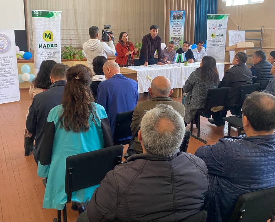 Акция доирасида Тошкент шаҳри, Юнусобод туманидаги 151 -умумтаълим мактаби фаоллар залида Ўзбекистон Нотариал палатаси ҳамда “Мадад”НТТ ҳамкорлигида маҳаллалар раислари (оқсоқоллари) учун ўқув-семинар ўтказилмоқда.