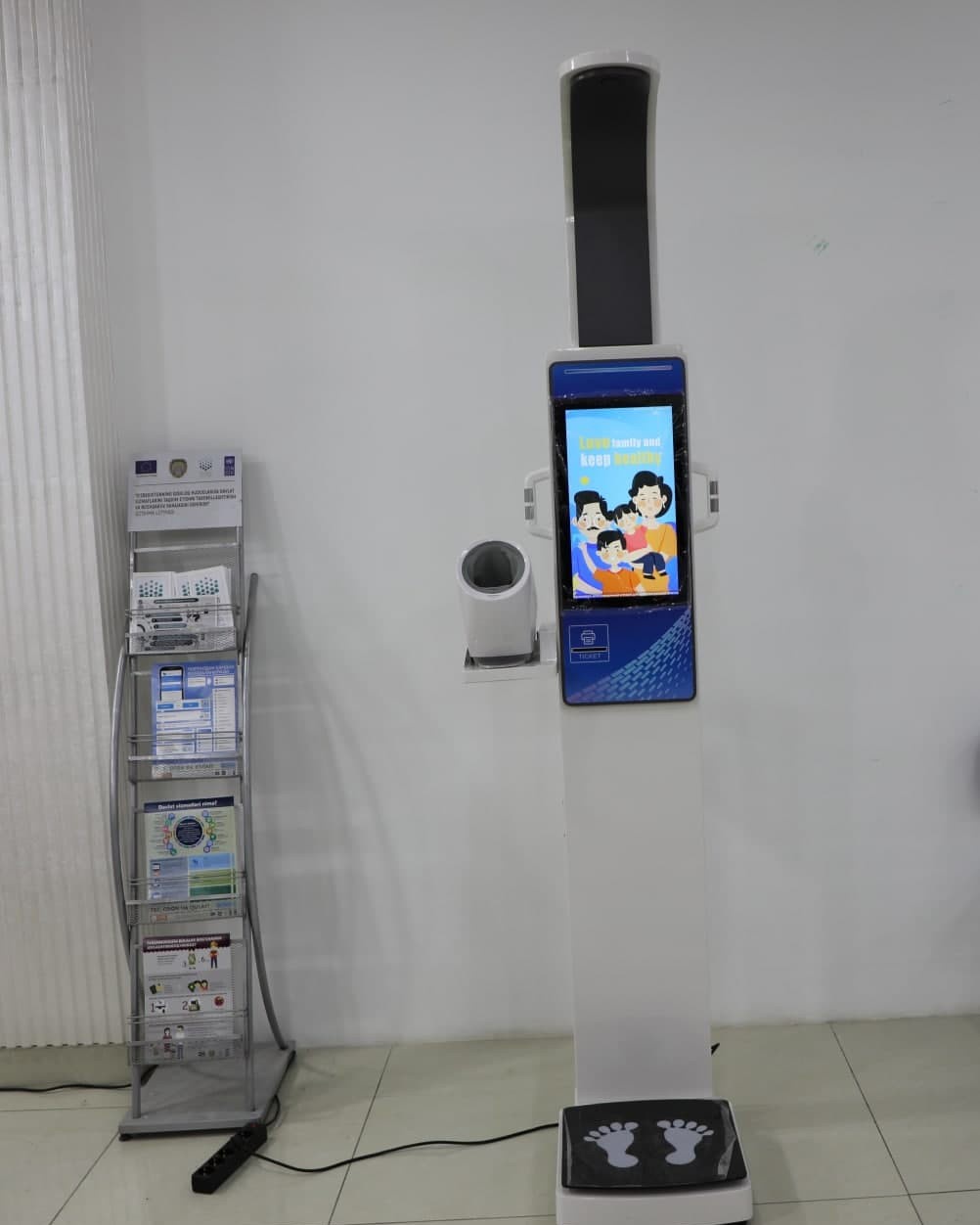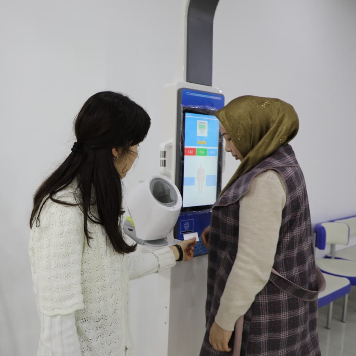 Ана шу фармон ижросини таъминлаш мақсадида Нурафшон шаҳар Давлат хизматлари марказида “Саломатлик бурчаги” ташкил этилди. Бу ерга ўрнатилган замонавий тиббий ускуна ёрдамида фуқаролар навбати келгунича ўз саломатлигини кўрикдан ўтказиши мумкин. Мазкур жиҳозга чиқиб, керакли тугмани боссангиз саноқли дақиқаларда вазнингиз, танангиздаги ёғ, сув, мускуллар, қон босимингиз ҳақида билиб оласиз. Шу билан бирга, сизнинг танангизга фоиз даражада талаб этиладиган маълумотлар акс этган чекни бир зумда тақдим этади.
