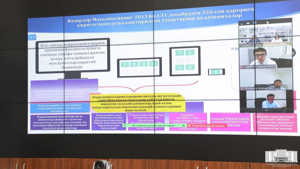 Zoom платформасида бўлиб ўтган тадбир мамлакатимиз Президентининг 2021 йил 16 июндаги «Давлат органлари ва ташкилотларининг фаолияти очиқлигини таъминлаш, шунингдек, жамоатчилик назоратини самарали амалга оширишга доир қўшимча чора-тадбирлар тўғрисида» фармони мазмун-моҳиятини тушунтиришга бағишланди, деб хабар беради Тошкент шаҳар ҳокимлиги матбуот хизмати.