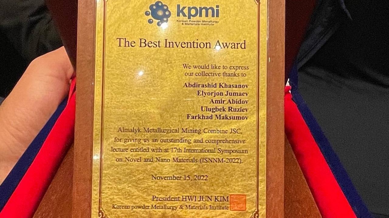 "Аммоний октамолибдати" ва "Никел асосида суперқотишма" ишланмалари Корея кукун металлургия ва материаллар жамияти томонидан "Энг яхши ишланма" мукофотига лойиқ кўрилди.