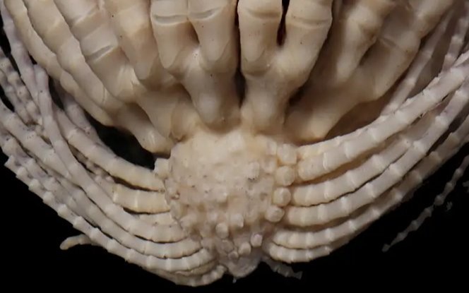 60 метрдан 1100 метргача чуқурликда яшайдиган бу жонзот Promachocrinus fragarius номини олди. У денгиз юлдузлари ва типратиканини ўз ичига олган Crinoidea синфига киради. Табиатда шунга ўхшаш турлар мавжуд, аммо уларнинг қўллари сони 10 тадан ошмайди. Унинг тукли қўллари учларида майда тирноқлари бор, улар океан тубини маҳкам ўрнашиш учун керак, деб хабар беради techcult.ru.