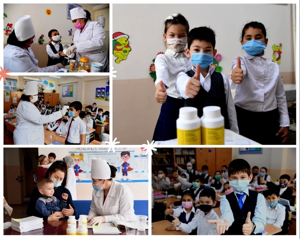 Болалар препаратларни боғча ва мактабларда қабул қилмоқдалар, шунингдек, уйда тарбияланаётганларга эса бирламчи тиббий-санитария ёрдами муассасалари ва Санитария-эпидемиологик осойишталик ва жамоат саломатлиги хизматининг ҳудудий бўлинмалари томонидан ташкил қилинган гуруҳлар маҳаллабай тарзда уйма-уй юриб, махсус дори воситаларини тарқатмоқда.