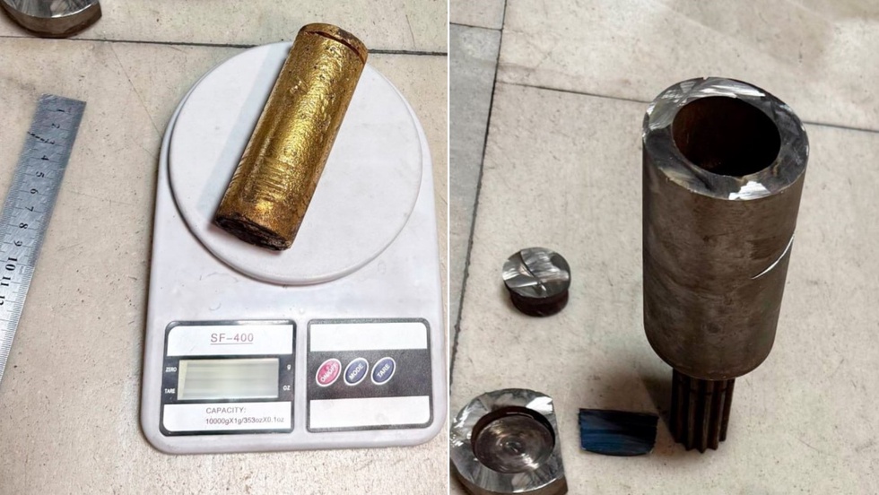 Текширув натижасида қоп ичида бўлган уч дона темир қопламали автомобиль эҳтиёт қисмлари махсус техник воситалар ёрдамида бўлакларга ажратилганда, уларнинг ичига жами 7 килограмм 784 грамм олтин қуймалари яширилгани аниқланди.