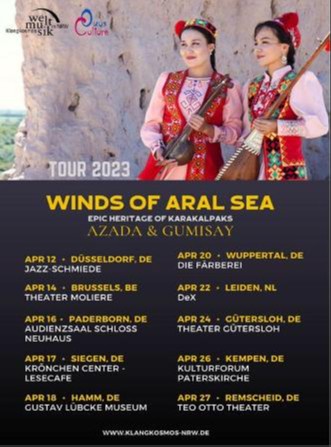 Гастрол давомида қорақалпоқ миллий мусиқа ва ашуласи ҳамда достончилик санъатини Германиянинг Дюссельдорф, Падерборн, Зиген, Хамм, Вупперталь, Гютерсло, Кемпен, Ремшайд шаҳарларида, Бельгиянинг  Брюссель шаҳридаги Мольер театрида  ҳамда Нидерландиянинг Лейден шаҳрида намойиш этиш  режалаштирилди.