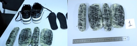 Натижада, унинг оёқ кийимлари ичида 4 дона полиэтилен пакетларга ўралган, вазни 594,05 граммни ташкил этувчи “гашиш” гиёҳвандлик воситаси борлиги аниқланди.
