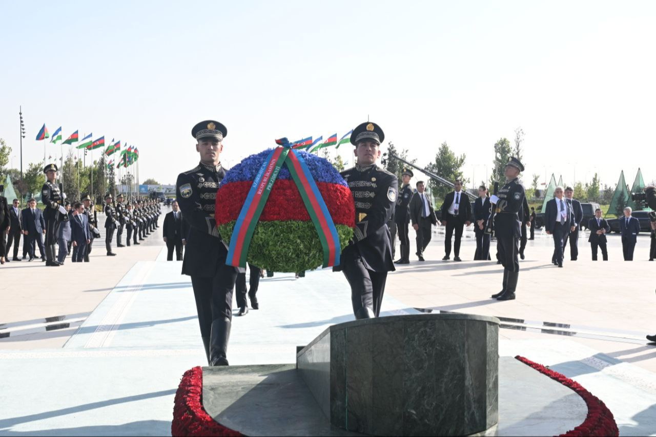 Олий мартабали меҳмон “Янги Ўзбекистон” боғидаги Мустақиллик монументи пойига гул қўйди.