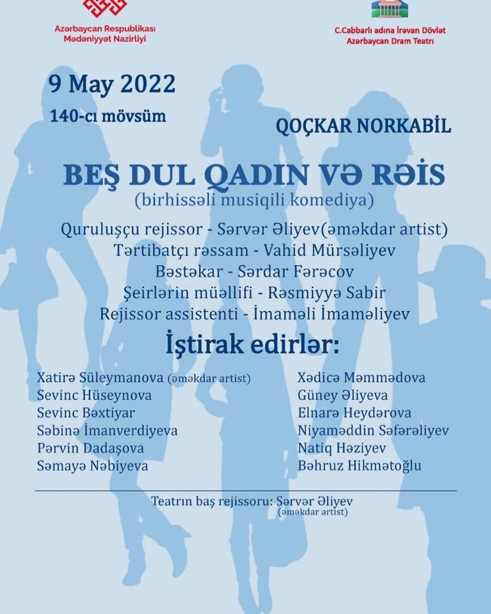 Озарбайжон Республикаси маданият вазирлиги ва Озарбайжон давлат драма театри берган маълумотларга кўра, мазкур пьеса ҳар икки давлатнинг мустақиллик йиллари тарихида Озарбайжон саҳнасига олиб чиқилган илк ўзбек асаридир. Уни театрнинг бош режиссёри Сарвар Алиев саҳналаштирган. Шеърлар муаллифи – Расмия Собир.