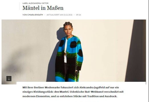 Бренд асосчиси, маданиятшунос ва дизайнер Александра Ягдфельд 2019 йилда Берлинда ўзининг биринчи ательесини очди. Савдо дўконида фақат аёллар халатлари сотилади. “Мен бир неча ҳафта давомида нақшларни ўрганиш, уларнинг ҳажми, алоҳида элементларини танлаш ва уларнинг рангларини тузиб чиқаман, - дейди дизайнер. - Бир неча йил аввал Ўзбекистонга борганимда ҳунармандчилик устахоналари фаолияти билан танишдим. Маҳаллий ҳунармандларнинг санъатини кўриб ҳайратга тушдим. Кейин ўз брендимни яратиш учун икат тўқув техникасини жорий этишга қарор қилдим”.