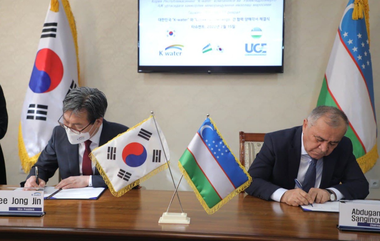 Икки томонлама бўлиб ўтган учрашувда “Ўзбекгидроэнерго” АЖ Бошқаруви раиси А. Сангинов ҳамда “K-water” компаниясининг вице-президенти Lee Jong Jin, компания бош директори Cheon Geun Ho, компания катта менежери Kim Jeong Myeong, глобал бизнес тармоғи бўйича бош директор ўринбосари Kim Jeong Myeong лар иштирок этишди.