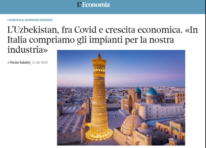 – Айни пайтда мамлакатимизда Италиянинг 53 та компанияси фаолият юритмоқда. Улардан 13 таси 2019 йилда ташкил этилган бўлиб, ишлаб чиқариш ва хизмат кўрсатиш соҳаларида иш юритади. «Confindustria» Италия саноати умумконфедерацияси билан бошланган ҳамкорлик ва «Confindustria Uzbekistan»га асос солиниши италиялик ҳамкорларнинг Ўзбекистонга қизиқишини янада оширишга ёрдам беради, деган умиддамиз. Биз Италия ташқи ишлар вазири Ди Майо ва 2019 йил Ўзбекистонга ташриф буюрган Ломбардия губернатори Аттилио Фонтана билан фаол мулоқотни давом эттирмоқдамиз.