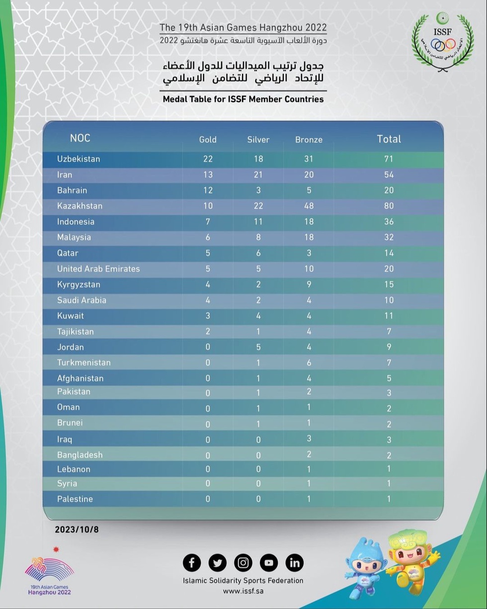 Ислом бирдамлиги спорт федерацияси ушбу ташкилотга аъзо мамлакатларнинг натижаларини эълон қилди ва унда Ўзбекистон делегацияси биринчи ўринда дея баҳоланди.