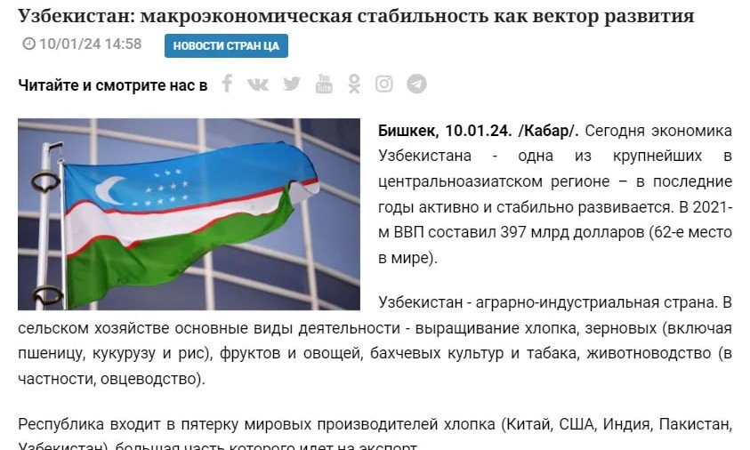 «Бугунги кунда Ўзбекистон иқтисодиёти Марказий Осиё минтақасидаги энг йирик иқтисодиётлардан бири бўлиб, кейинги йилларда фаол ва барқарор ривожланиб бормоқда», — деб ёзган муаллиф.