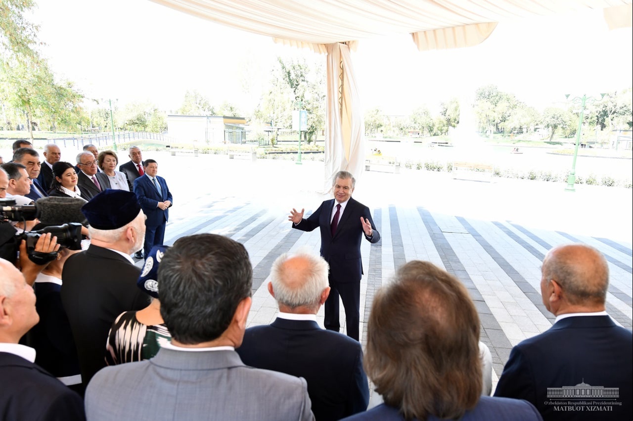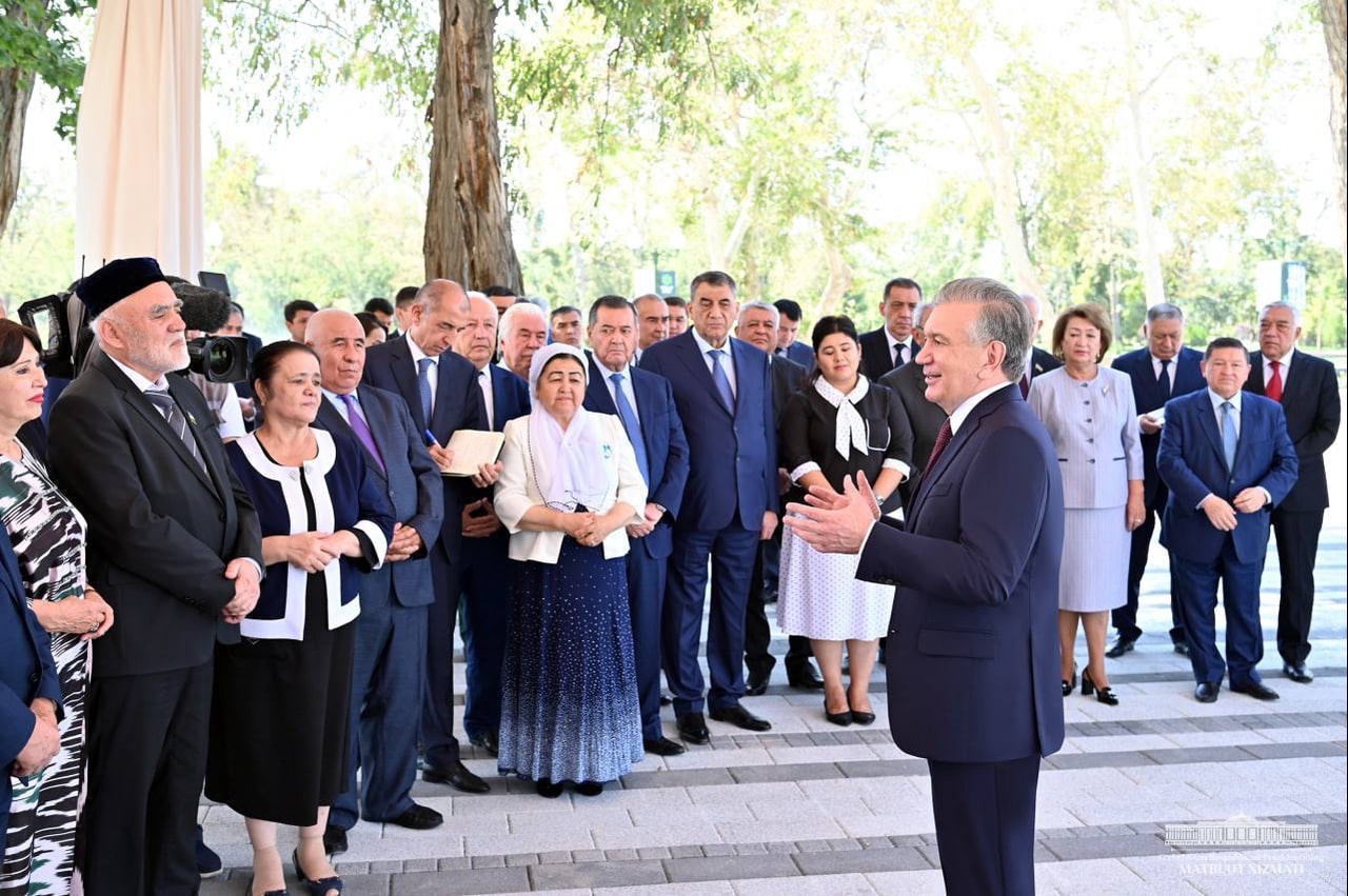Давлатимиз раҳбари шу ерда нуронийлар, адабиёт ва санъат намояндалари билан ҳам суҳбатлашди. Уларни яқинлашиб келаётган Мустақиллик байрами билан табриклаб, ушбу боғнинг аҳамияти ҳақида гапирди.