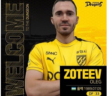 Маълумот учун, 1990 йилда туғилган Олег Зотеев фаолияти давомида «Пахтакор», «Олмалиқ», «Бунёдкор» ва «Локомотив» клубларида тўп сурган. «Чоннам Драгонс» клуби эса ҳозирги кунда «Кей-лига-2» турнир жадвалида 7 ўйиндан кейин 10 очко жамғариб, 6-ўринда бормоқда.